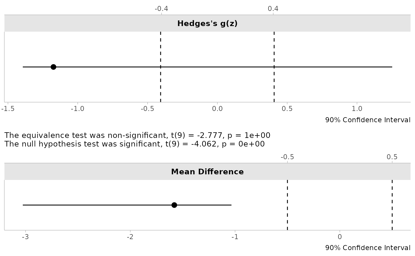 ## The equivalence test was non-significant, t(23.96) = -1.363, p = 9.62e-01
