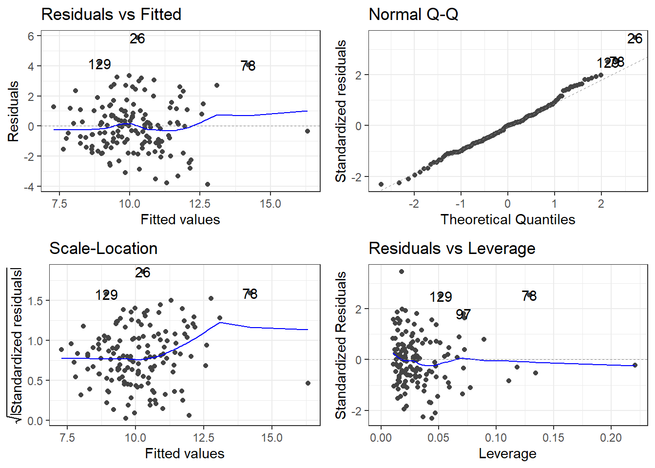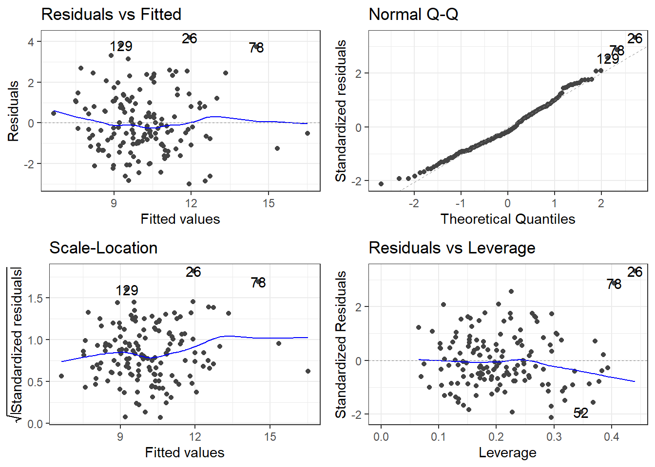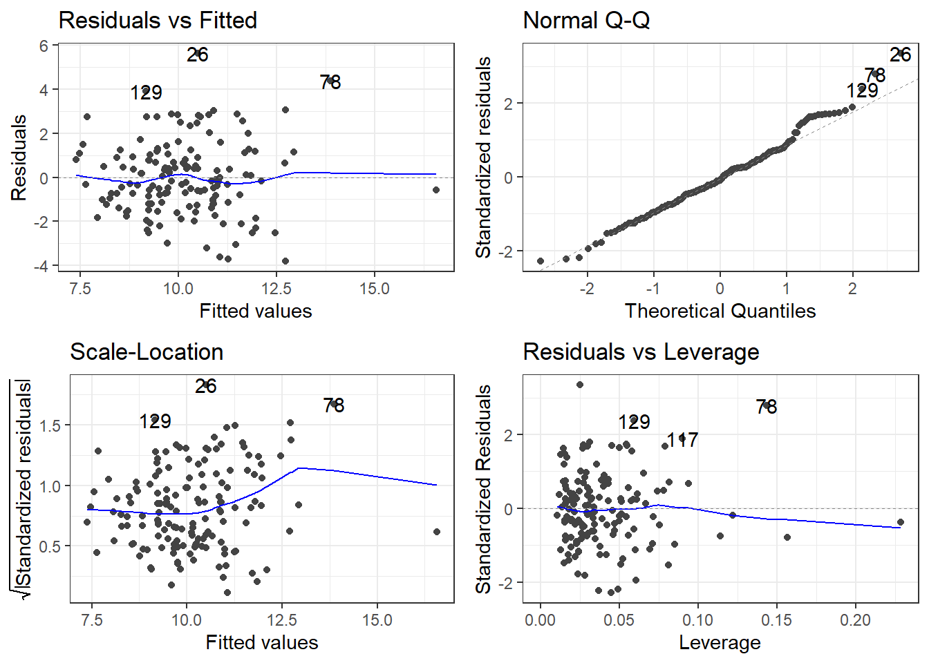 - Check residuals and outliers again. Hopefully everything looks. Good.