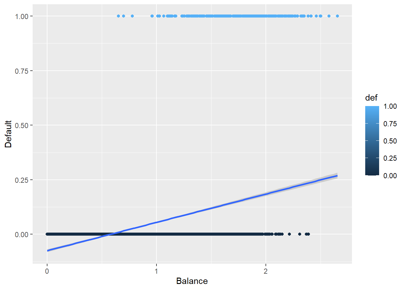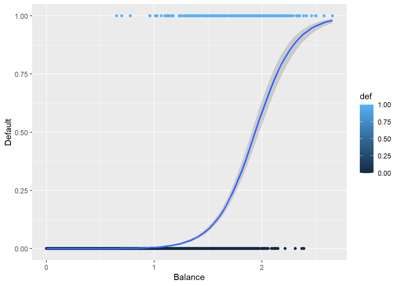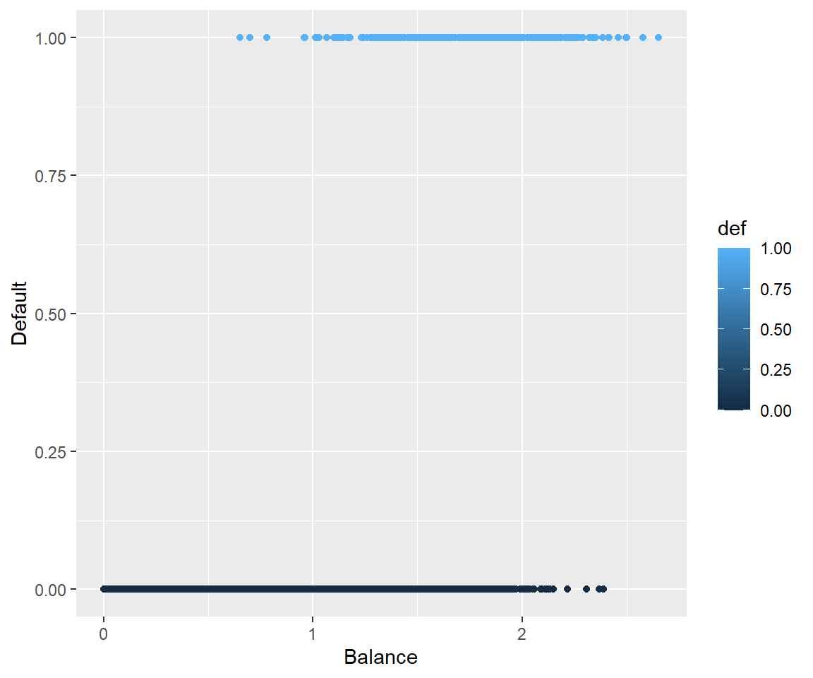 We will start by modeling \(P\text{(Default | Balance}) \equiv P(Y | x)\).
